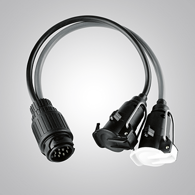 - Vilkimo kablio laidų pynės adapteris, 7 kontaktų (automobilis) / 13 kontaktų (priekaba)