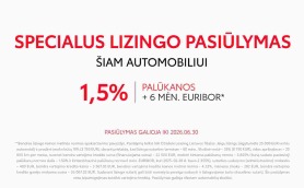 Bendros lizingo kainos metinės normos apskaičiavimo pavyzdys. Pasiūlymą teikia SIA Citadele Leasing Lietuvos filialas. Automobilio kaina 25 000 EUR, pradinė įmoka 10% (2 500 EUR), lizingo sutarties terminas – 60 mėn., likutinė vertė 35% (8 750 EUR), ridos apribojimas – 20 000 km per metus, tuomet bendra vartojimo kredito suma (finansuojama suma) – 22 500 EUR, metinė kintama palūkanų norma – 3.569 % (pastovioji palūkanų normos dalis – 1.50% + 3 mėn. EURIBOR, kuris 2025-11-15 d. buvo 2.069%), sutarties mokestis – 250 EUR, bendra vartojimo kredito kaina – 3 181.78 EUR, bendros vartojimo kredito kainos metinė norma – 4.03%, mėnesio įmoka – 278 EUR, bendra vartojimo kredito gavėjo mokama suma – 25 681.78 EUR. Sudarant lizingo sutartį gali būti numatyta pareiga sudaryti ir lizinguojamo turto draudimo sutartį. Šis pasiūlymas nėra įsipareigojimas suteikti vartojimo kreditą.
