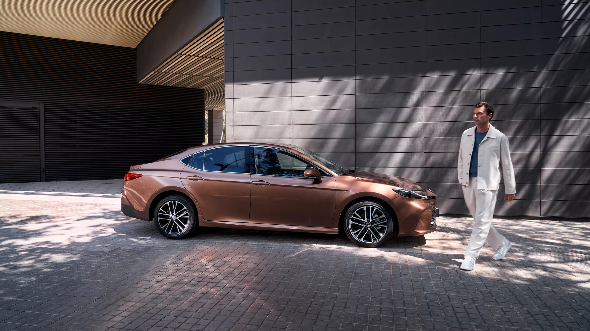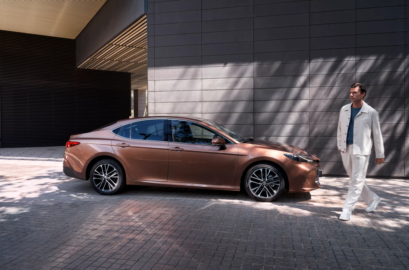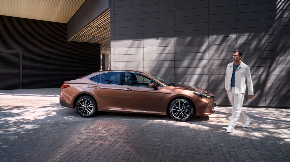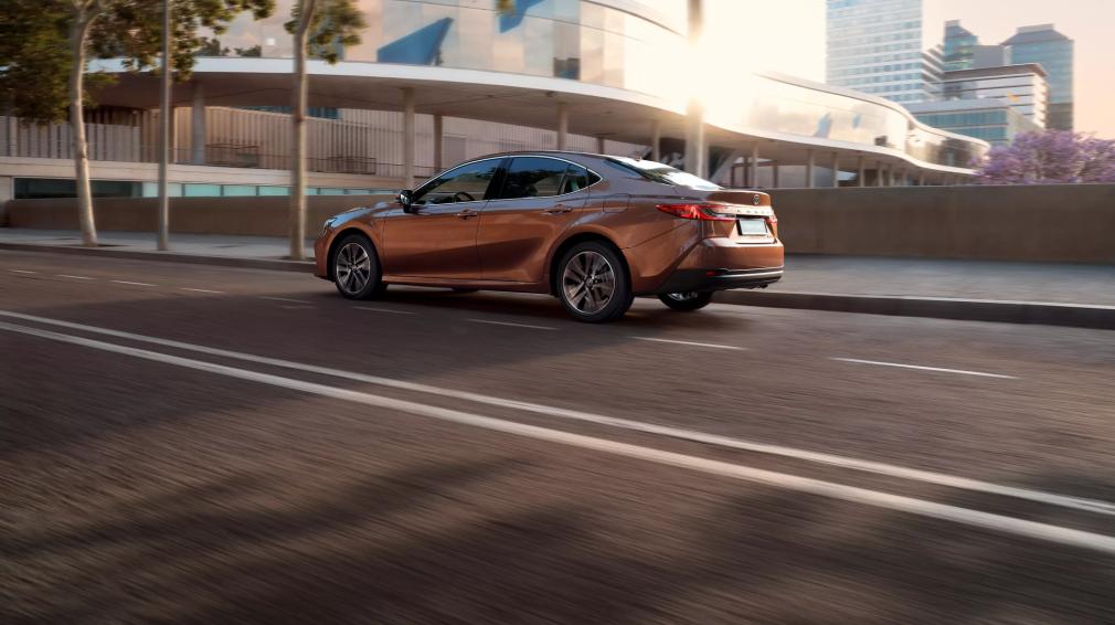Energija trykštantis Toyota Camry pasižymi charakteringomis linijomis, išryškinančiomis dailų kėbulą ir žemėjančią galinę stogo dalį. Vizualiai dinamiška kūjaryklio forma ir žemas, aptakus kėbulas bei dailiai suformuota Toyota Camry išorė sujungia sportiškumą ir rafinuotumą. Ploni, aštraus kampo naujieji žibintai dar labiau išryškina kėbulo dizainą, suteikdami bendram sedano siluetui unikalų modernumo ir smagaus vairavimo įspūdį.
