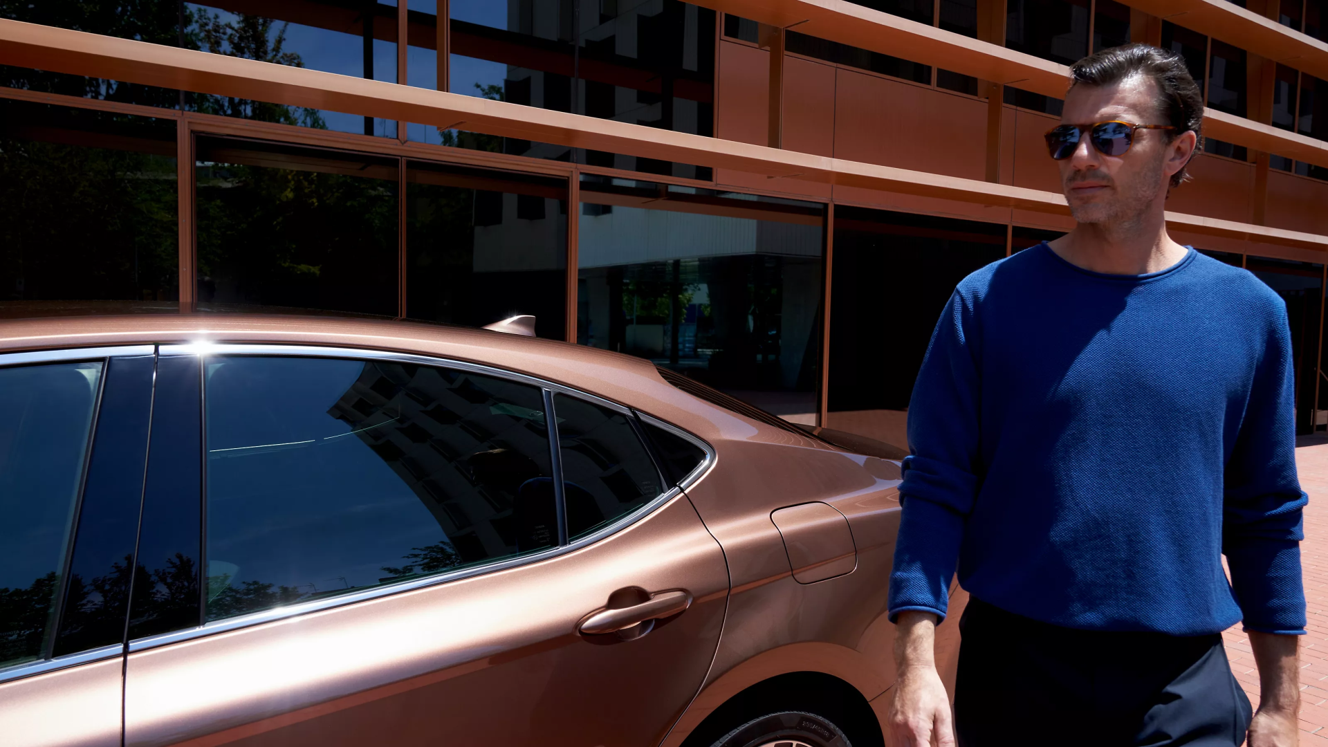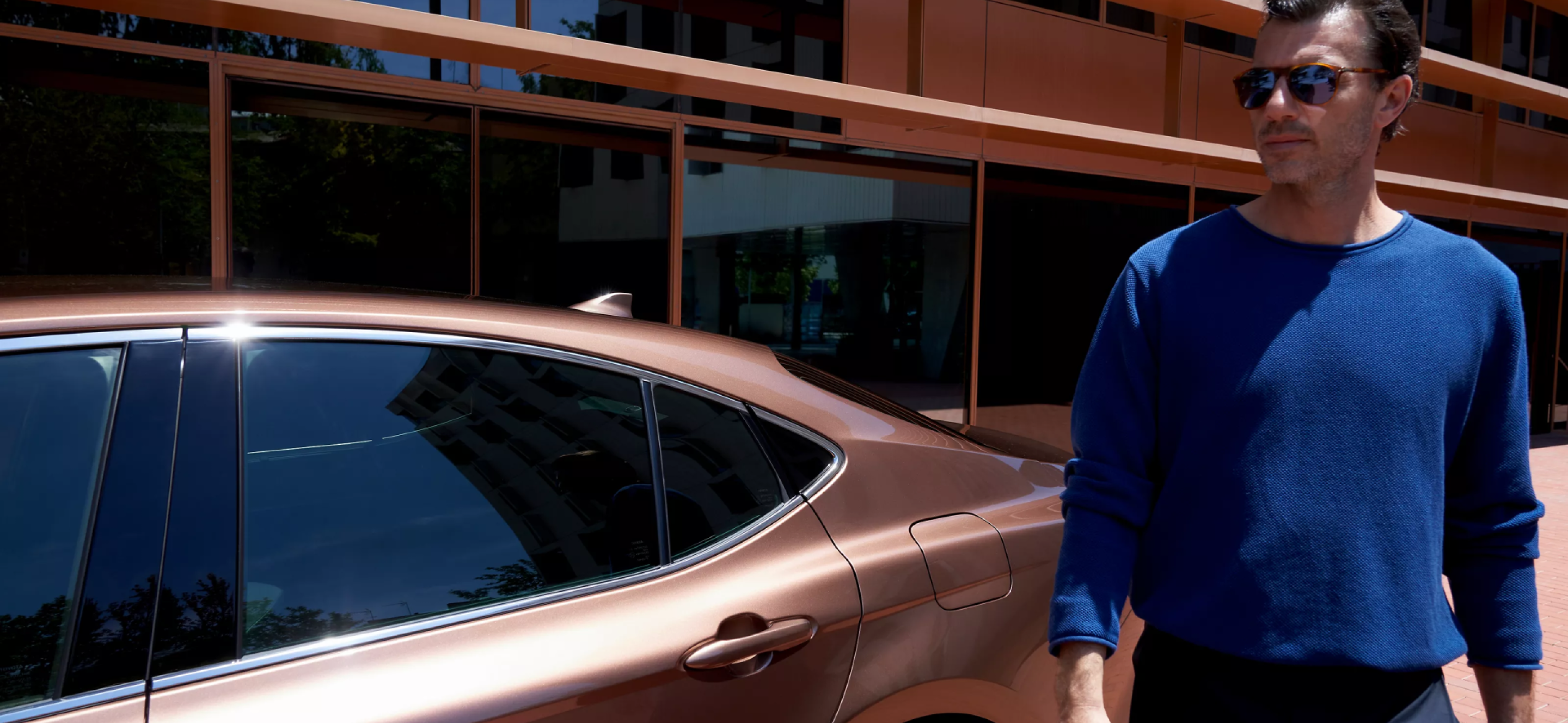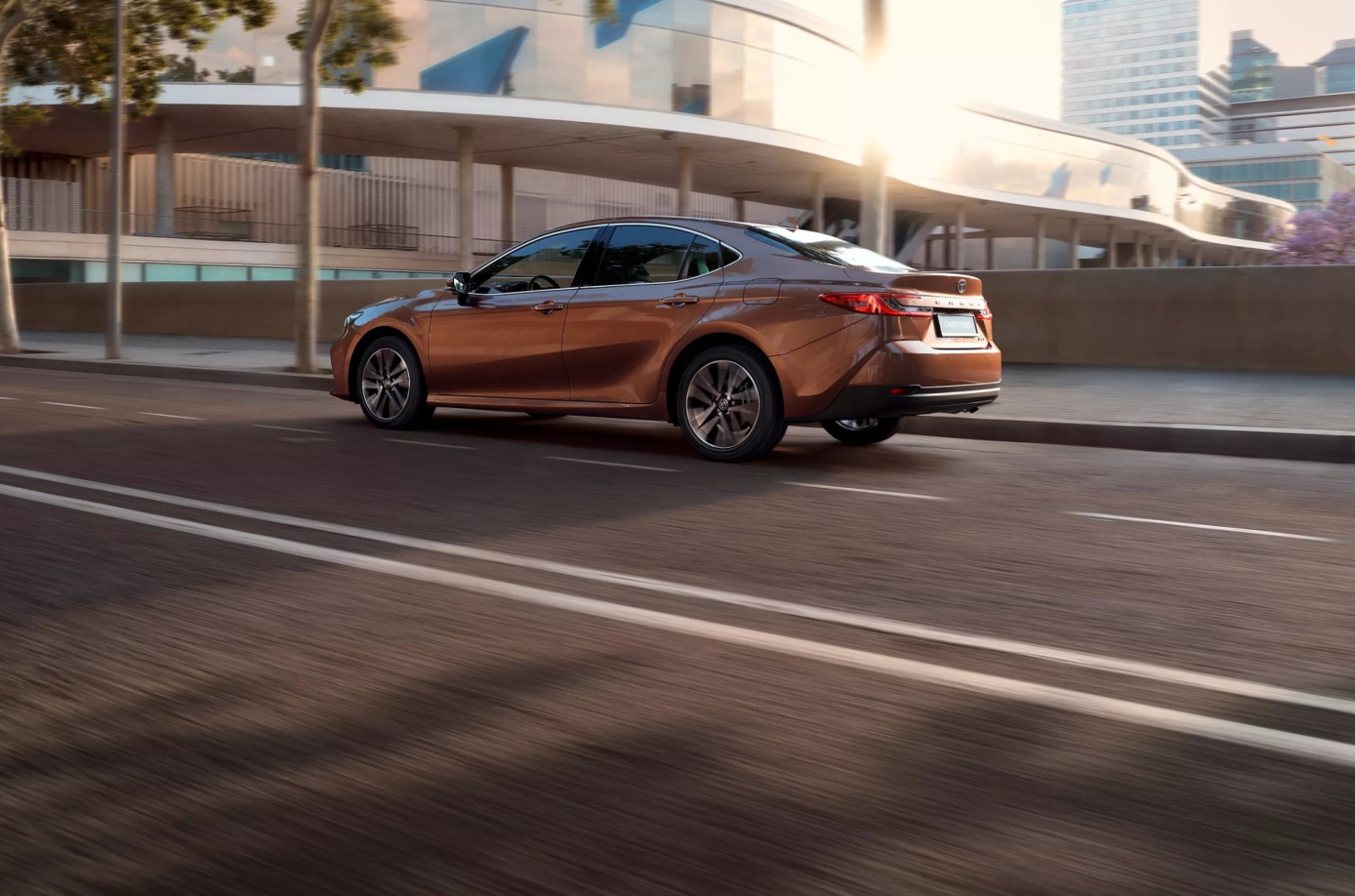 Energija trykštantis Toyota Camry pasižymi charakteringomis linijomis, išryškinančiomis dailų kėbulą ir žemėjančią galinę stogo dalį. Vizualiai dinamiška kūjaryklio forma ir žemas, aptakus kėbulas bei dailiai suformuota Toyota Camry išorė sujungia sportiškumą ir rafinuotumą. Ploni, aštraus kampo naujieji žibintai dar labiau išryškina kėbulo dizainą, suteikdami bendram sedano siluetui unikalų modernumo ir smagaus vairavimo įspūdį.