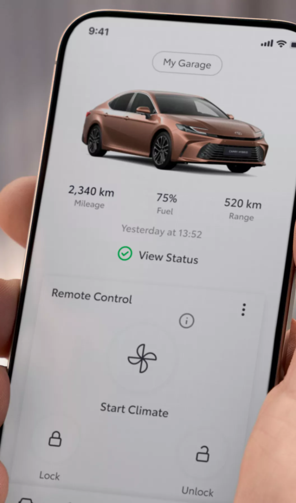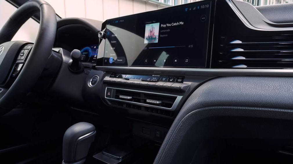 Toyota Camry multimedijos sistema Toyota Smart Connect sukurta taip, kad kiekviena kelionė būtų kuo sklandesnė. Naudodamiesi MyToyota programėle, galėsite stebėti ir valdyti automobilio funkcijas iš savo išmaniojo telefono. Pasirinkite garsiakalbių priedus ir komplektą Smart Connect+, kad galėtumėte naudotis papildomomis funkcijomis. 12,3 colio ekrane pasiekiama Apple CarPlay ir Android Auto, realiuoju laiku veikia debesijos navigacija, valdymo balsu, skaitmeninio raktelio ir nuotolinio valdymo paslaugos. O JBL® garso sistema ir aukšto lygio garso izoliacija užtikrina įtraukiantį erdvinį garsą – kiekviena kelionė tampa tikru malonumu.
