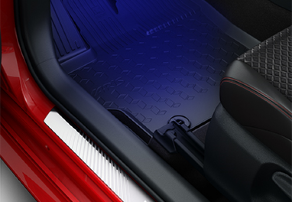 Moderni Toyota Yaris salono aplinka su patogiomis funkcijomis suteikia dar daugiau laisvės. Subtilus apšvietimas ir aukštos kokybės medžiagos kuria stilingą įvaizdį, o mėlynos siūlės bei dekoratyvinė juostelė iki durelių suteikia vientisos erdvės pojūtį. Profiliuotos sėdynės su juosmens atrama užtikrina komfortą kiekvienoje kelionėje. Toyota Yaris taip pat išsiskiria gausiomis dėtuvėmis ir talpiu bagažo skyriumi, pasiruošusiu kasdieniams iššūkiams. Reikia daugiau vietos? Nulenkę galines sėdynes lengvai pritaikysite saloną įvairiems kroviniams – nuo kasdienių pirkinių iki didesnių daiktų.